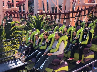 My favorite ride at the park. The front car in the far-left seat is the best!