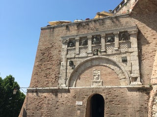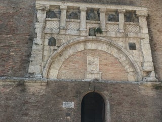 La porta, che raffigura Giove e i Dioscuri, è di origine etrusca, con diversi elementi romani. Ed è anche un accesso secondario alla Rocca Paolina.
