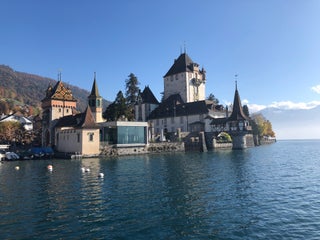 Take the boat from Thun to Gunten and hike from there to Oberhofen. The hike takes about an hour and is very pretty!