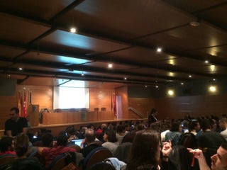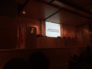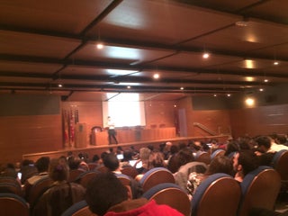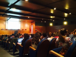 La sala de conferencias es comoda y tiene mesitas plegables para trabajar.