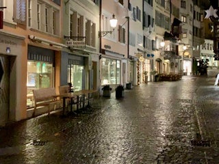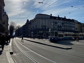Cute and cozy cafes. Lots of huge banks or companies. One of the main traffic points for public transport in zurich