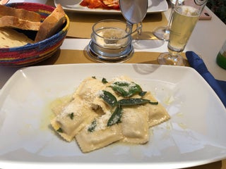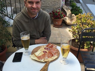 Sample the cheese and cold cuts platter on the terrace, with a beer. Dinner is nice but nothing too exciting.