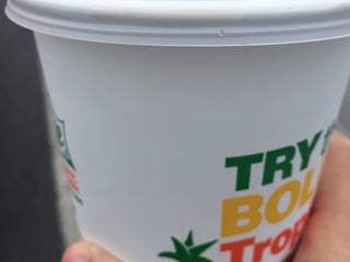 Chicken nuggets and a chocolate shake.