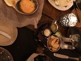 Happy hour 5 until 7. But more importantly, the seafood is incredible. Go for the catfish cheeks and langoustine if it's available and you like the sound of it - out of this world!