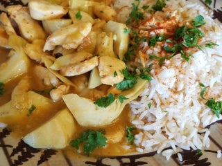 Awesome chicken schwarma, and really good hummus.