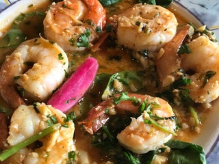 Cilantro shrimp, chicken shata, best garlic ever... lemon chicken.