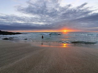 Nice place to sun tan with the cool breeze coming through. Definitely not a swimming beach. Rough waves coming through. Very good for boogie boarding /skim boarding.