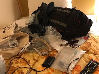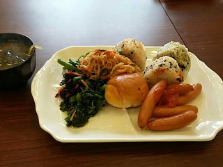 2015年9月7日(月)の朝食。おにぎり・パン・ひじき・ポテトサラダなど。