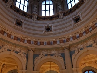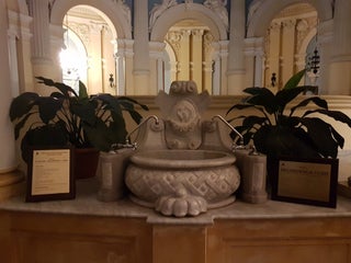 Zdrowe lecznicze wody ze źródeł Zdzisław i Skłodowska-Curie w pełnej kolorów, barokowej pijalni na styl łaźni tureckiej.