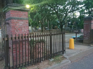 八幡公園の入り口の赤レンガの門柱は旧陸軍司令部正門のものです。