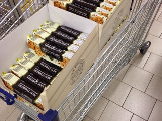 De chocomelk gaat elke keer mee het mandje in :-)